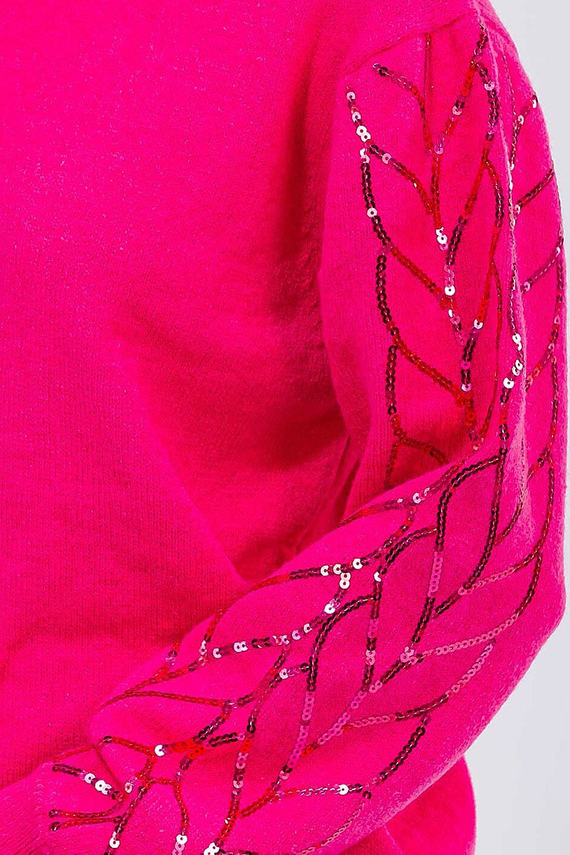 Pink Long Sleeve Sequins Detailed Pullover Sweater-runs long