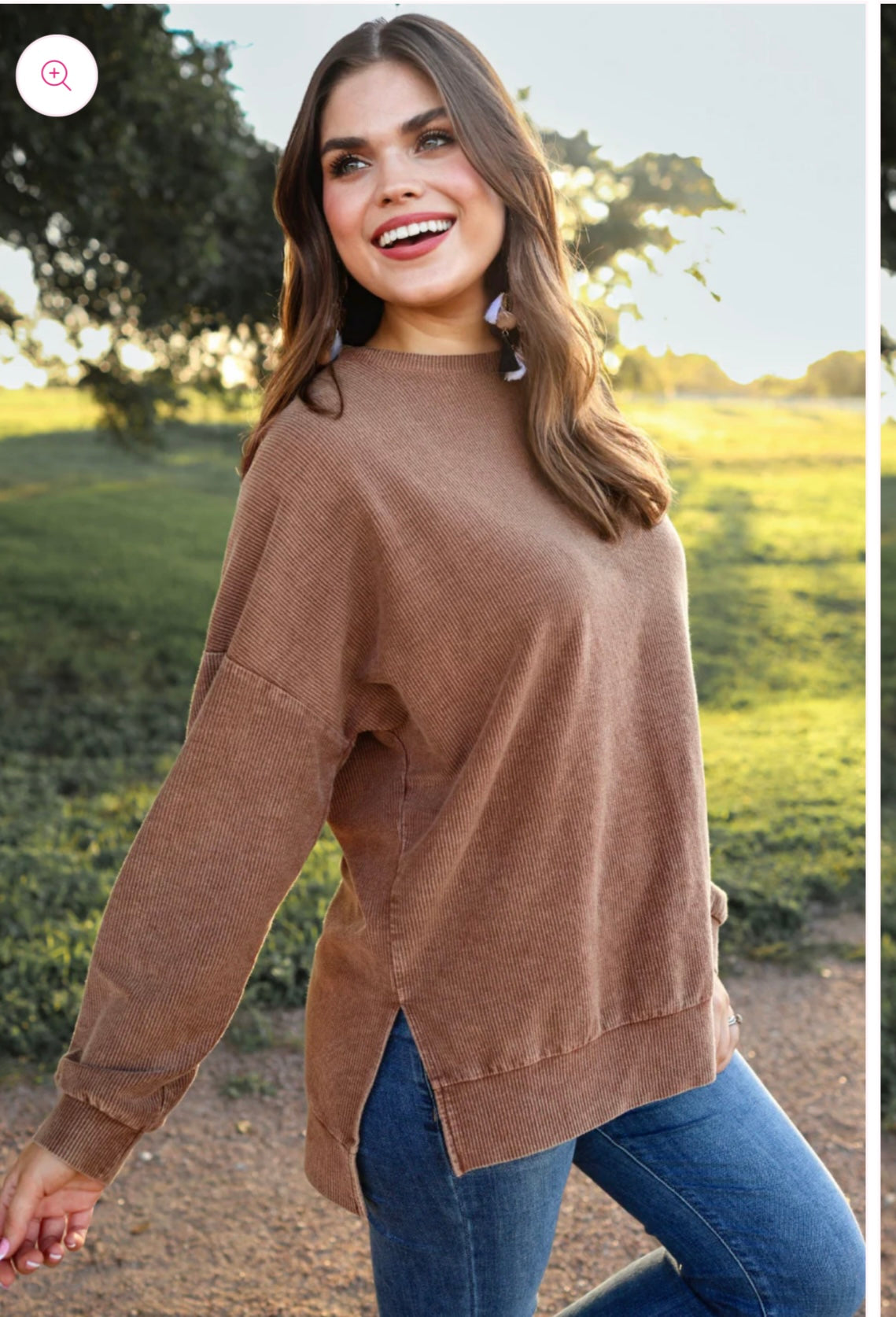 Our corded pullovers are back and better than ever! The Alexis Corded Pullover is the perfect comfy and casual piece! You will definitely want to make room in your closet for this one!  It features a ribbed texture, crew neck collar, hi-lo style with slits, vintage wash and a relaxed fit. These have endless style possibilities