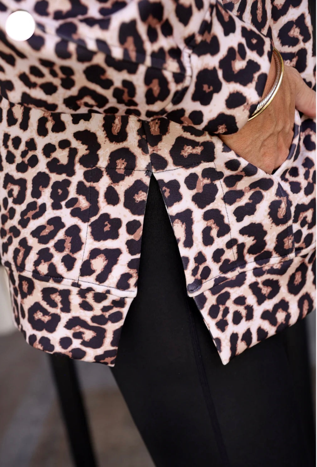 Stay stylish and cozy with our Everyday Pullover, Safari Chic. This pullover features a warm brown leopard pattern, accented by a gold quarter zip. Made for comfort, it's perfect for everyday wear.