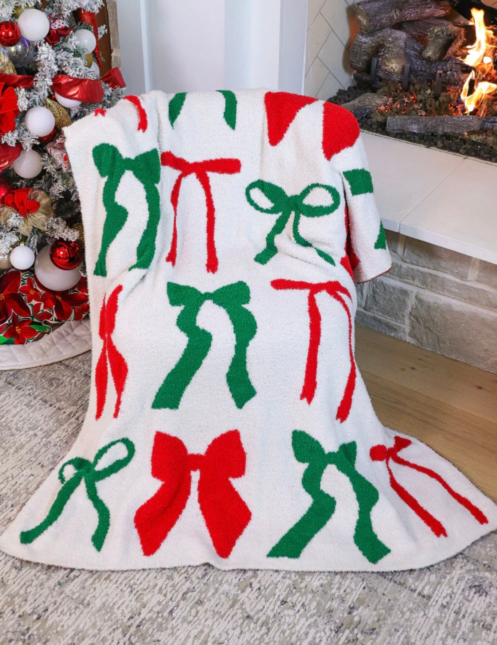 Introducing our classic Midnight Bow, now dressed up for Christmas! Featuring festive green and red bows, this blanket combines holiday charm with cozy comfort. Perfect for adding a playful touch to your seasonal snuggle!