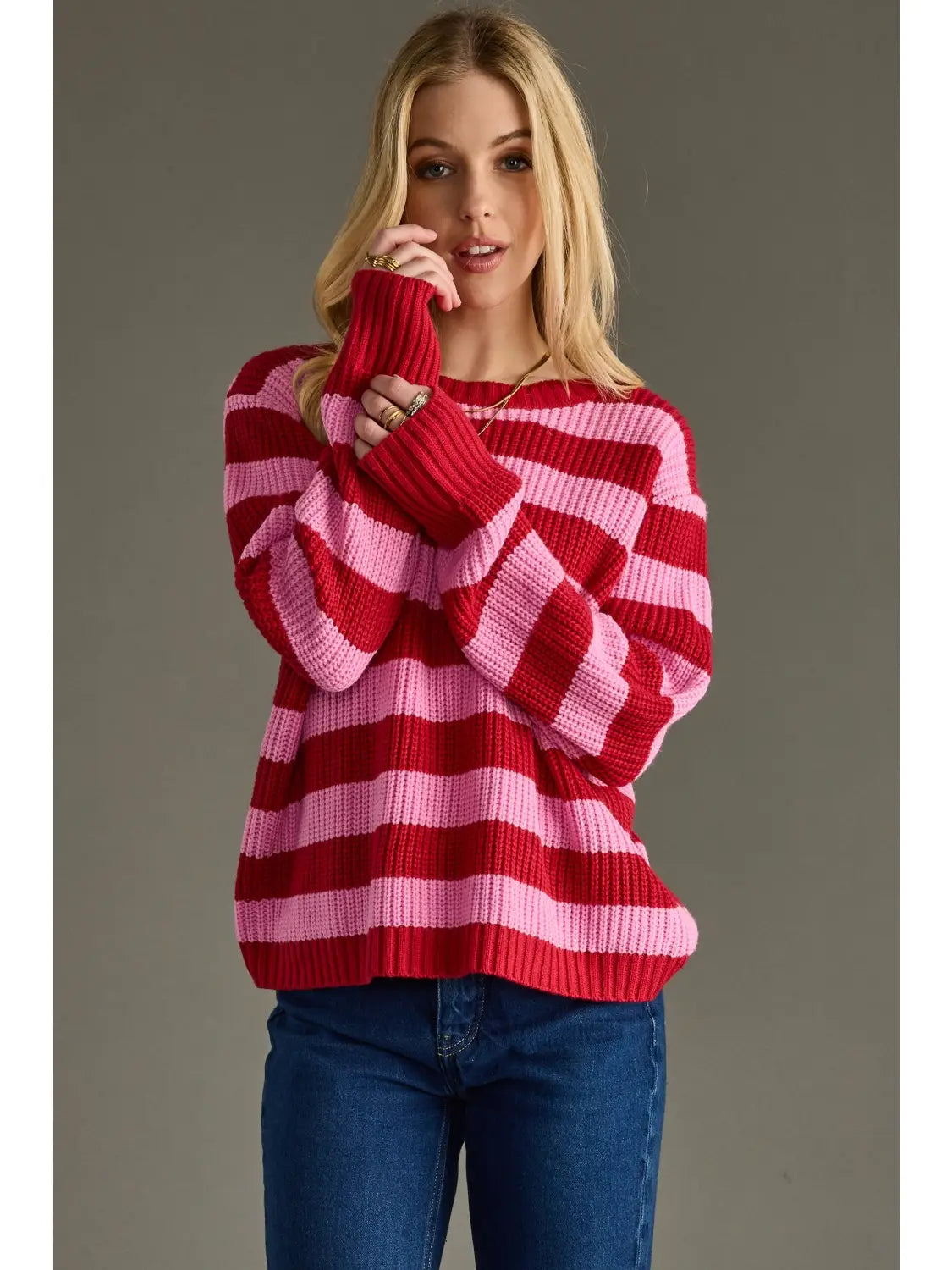 Pink & red striped knit sweater